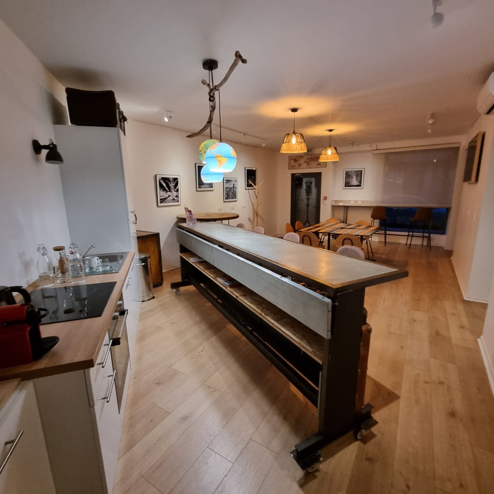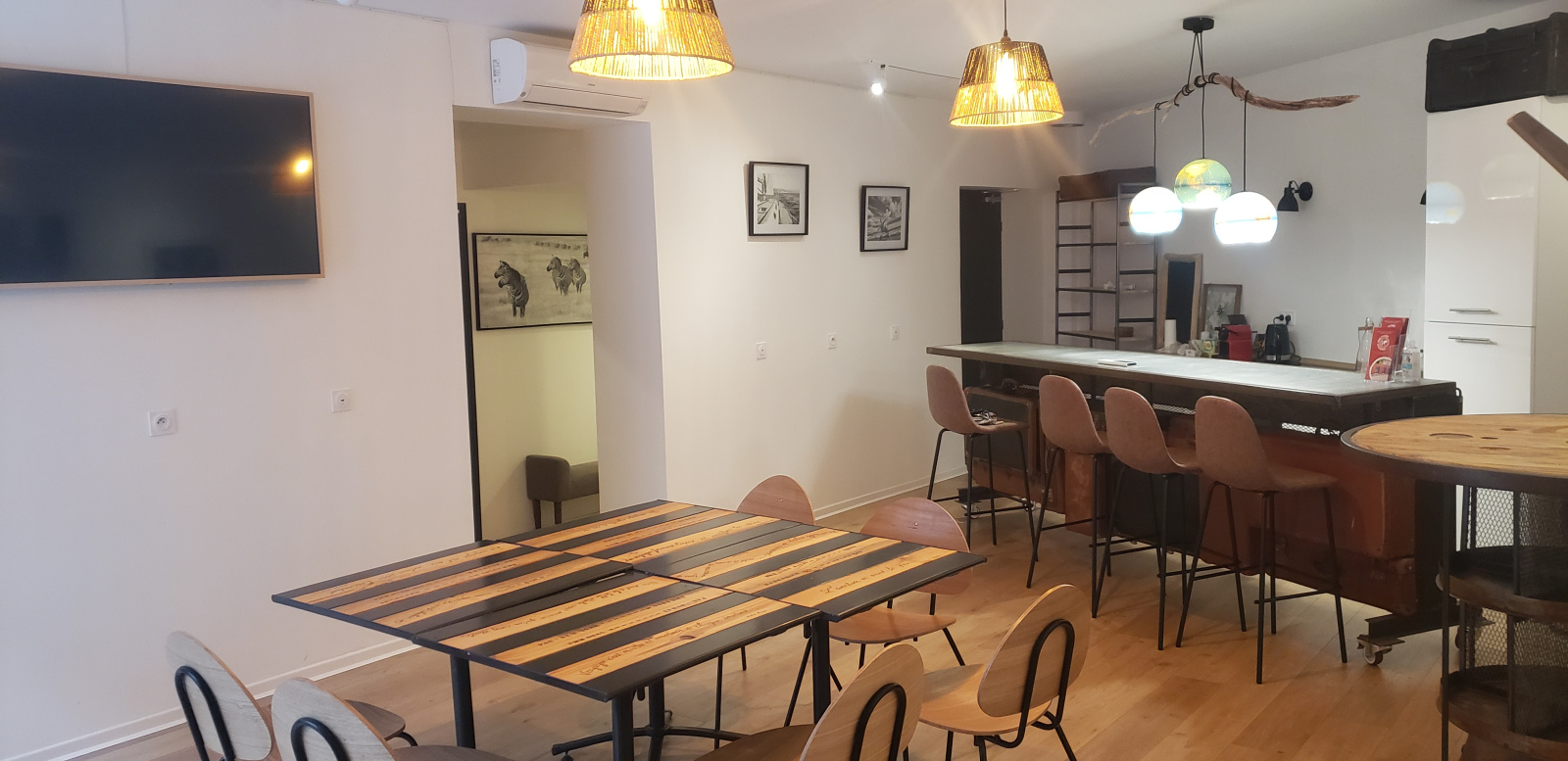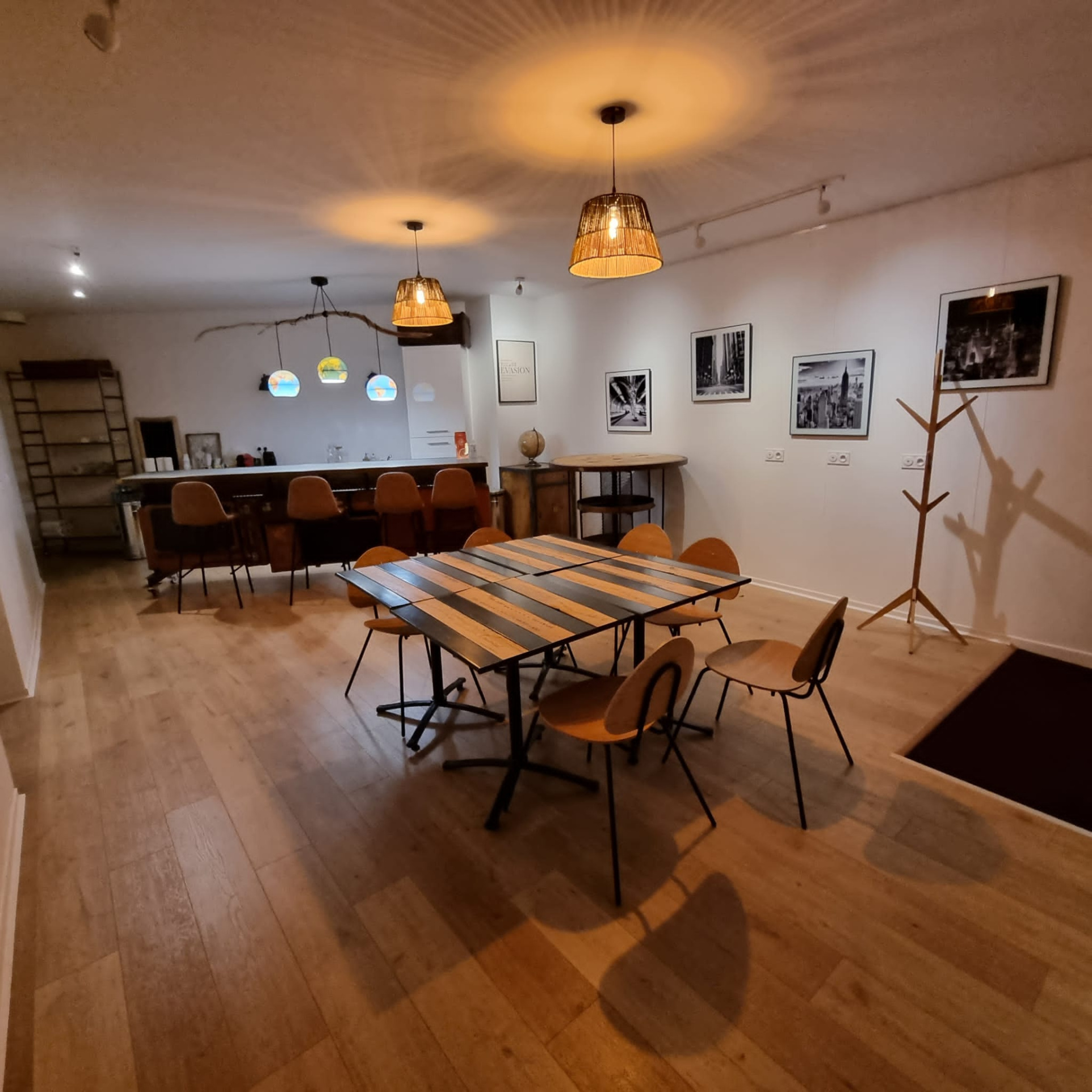 Entièrement rénové, meublé et décoré par un architecte dans un style contemporain, le local est composé d'une grande pièce principale de 40 m² avec vitrine sur rue, équipée d'un bar avec frigo, plaques, four, évier, lave-vaisselle et de 4 tables, d'une 2ème pièce/salle de réunion avec une 2ème vitrine et 2 tables, un sanitaire et un local technique de rangement.