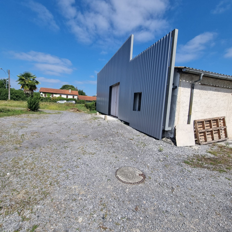 A louer local commercial neuf de 114 m² avec sanitaires, sur un terrain de 1 200 m² comprenant des parkings et un accès direct à la route de Bordeaux. Bonne visibité en bordure d'une route nationale très fréquentée.