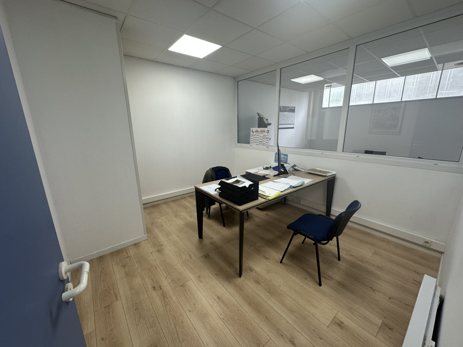 Isolé, climatisé et en très bon état, il est composé de 3 bureaux avec sanitaires sur 53 m², d'un entrepôt d'environ 60 m² facile d accès pour tous types de livraison et de plusieurs places de parking communes.