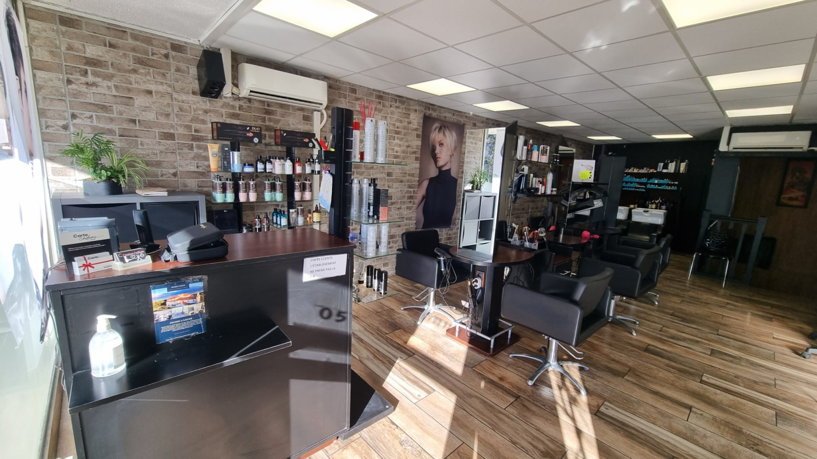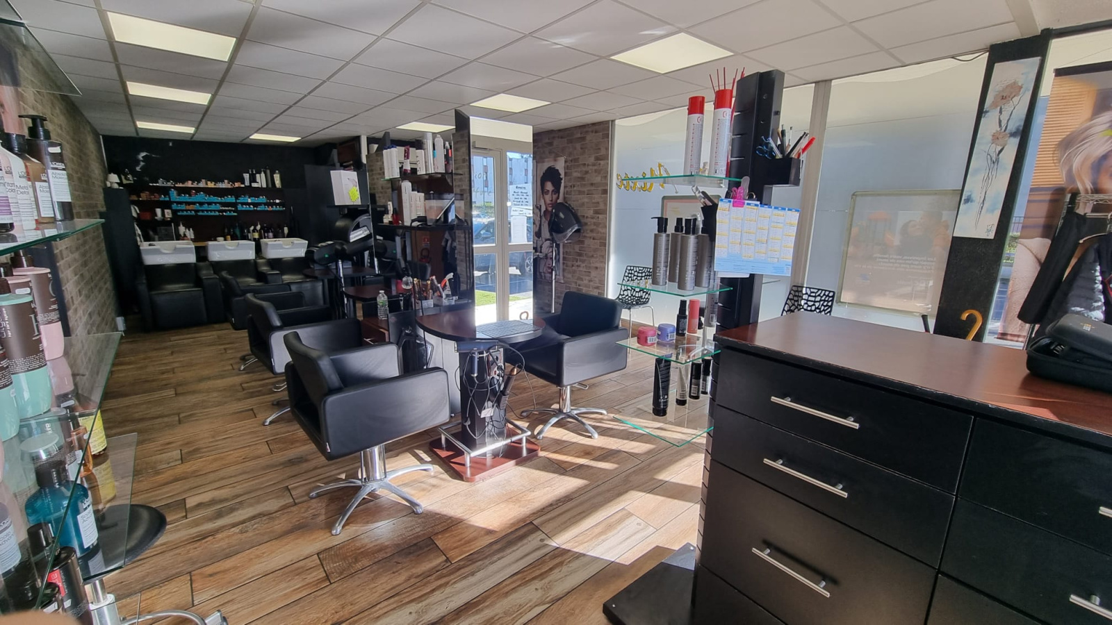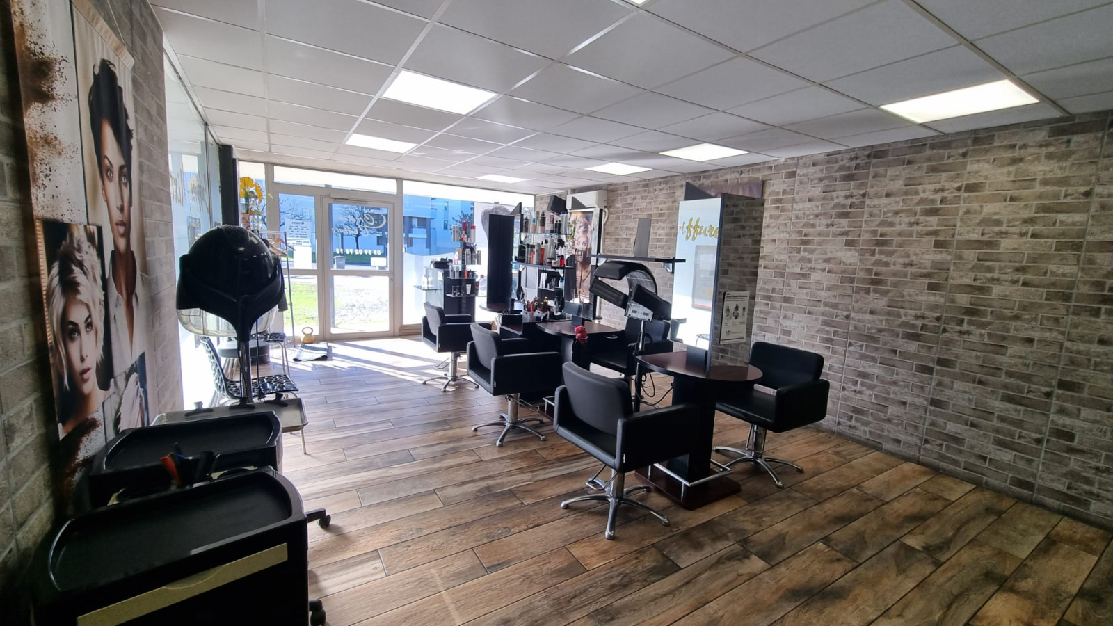 L’agencement est optimal : il comprend 6 postes de coiffure, 3 espaces shampoing, une cabine de bronzage et une réserve au sous-sol. De nombreux parkings gratuits à proximité facilitent l’accueil des clientes.