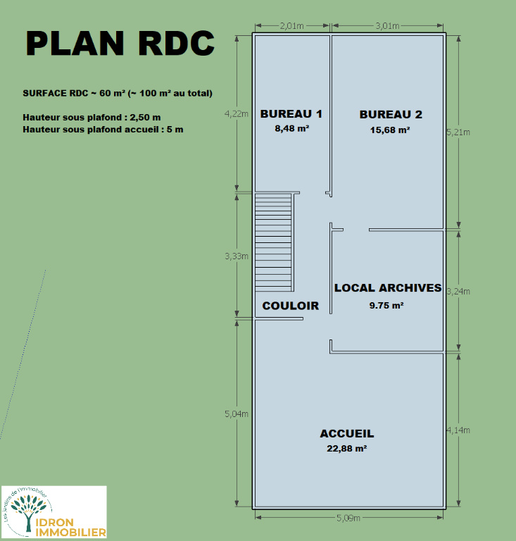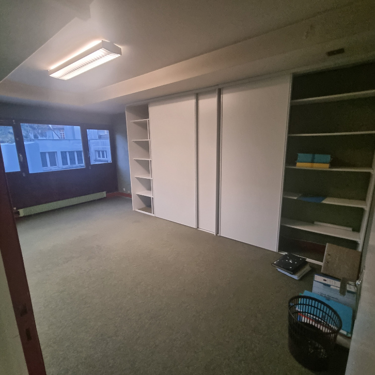Local avec grande vitrine et très bonne visibilité, composé d'un RDC d'environ 60 m² avec un accueil, deux bureaux ainsi qu'un local d'archives et d'un étage d'environ 40 m² avec une mezzanine, un bureau, un coin repas et des toilettes, le tout en excellent état. Facilités de parking, parfait pour profession libérale. Offre d'achat acceptée