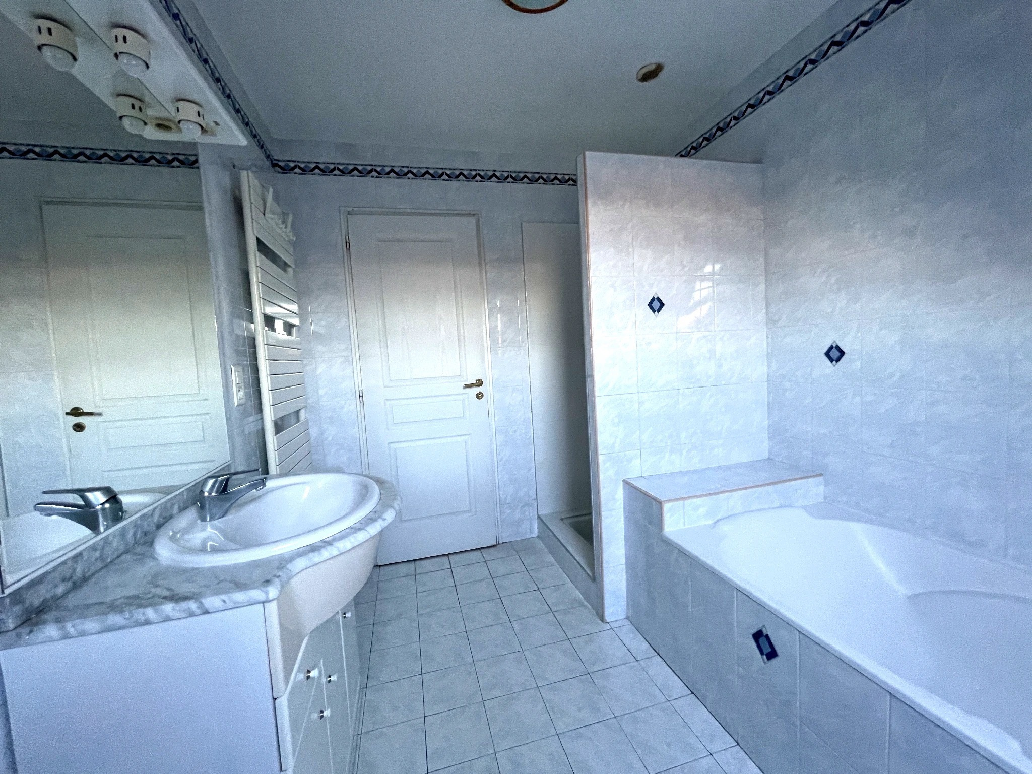 Avec ses 141 m² habitables répartis sur deux niveaux, elle offre au rez-de-chaussée un vaste espace de vie lumineux de 60 m² avec cuisine ouverte, ainsi qu'une chambre parentale avec salle d'eau et un WC séparé. L'étage dispose de trois chambres supplémentaires, d'un bureau, d'une salle de bains et d'un WC indépendant.