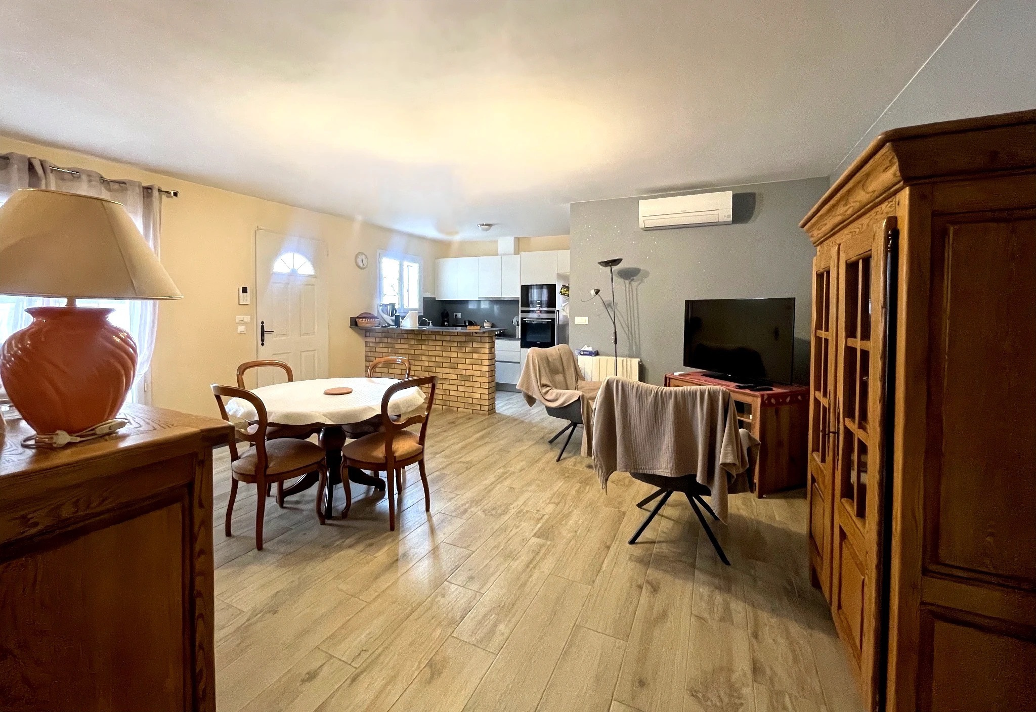 Édifiée en 2007 sur un terrain de 184 m² orienté plein sud, elle offre un espace salon/séjour avec une cuisine équipée ouverte et un cellier, deux chambres, une salle d'eau avec douche à l'italienne, un WC, une terrasse couverte et un spacieux garage.