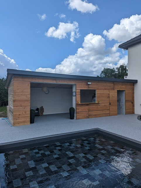 À l’extérieur, vous profiterez d'un pool house de 36 m² et d'une superbe piscine pour des journées ensoleillées.