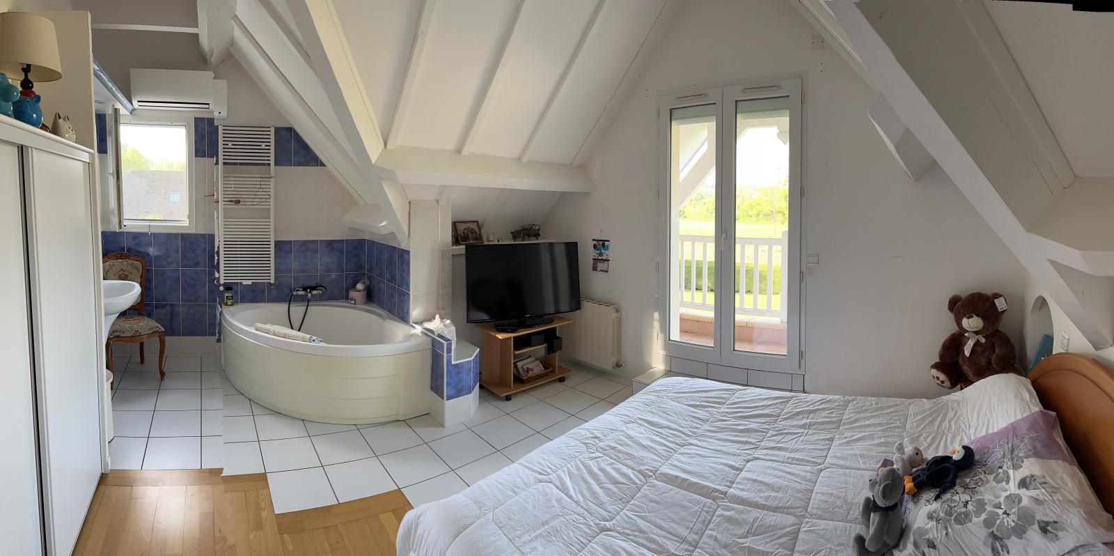 Idéale pour votre famille, elle allie le calme d'un cadre champêtre avec le confort moderne : chauffage au sol, pompe à chaleur, climatisation réversible et panneaux solaires !