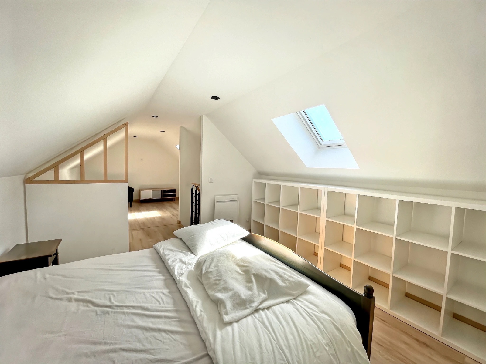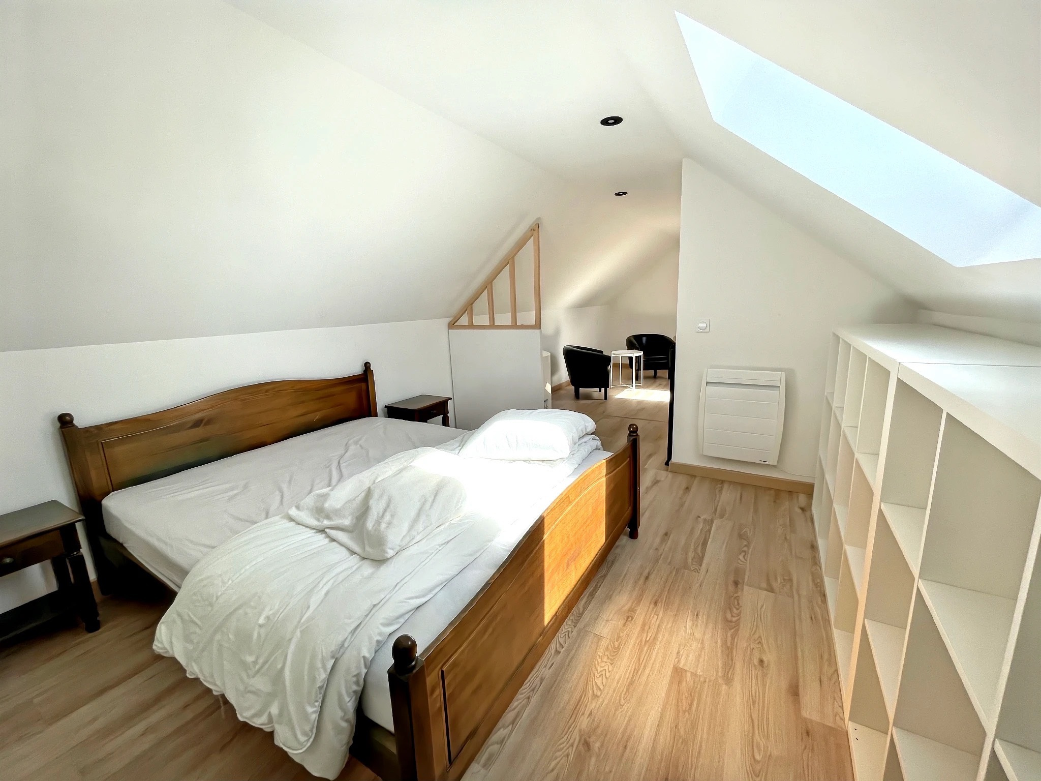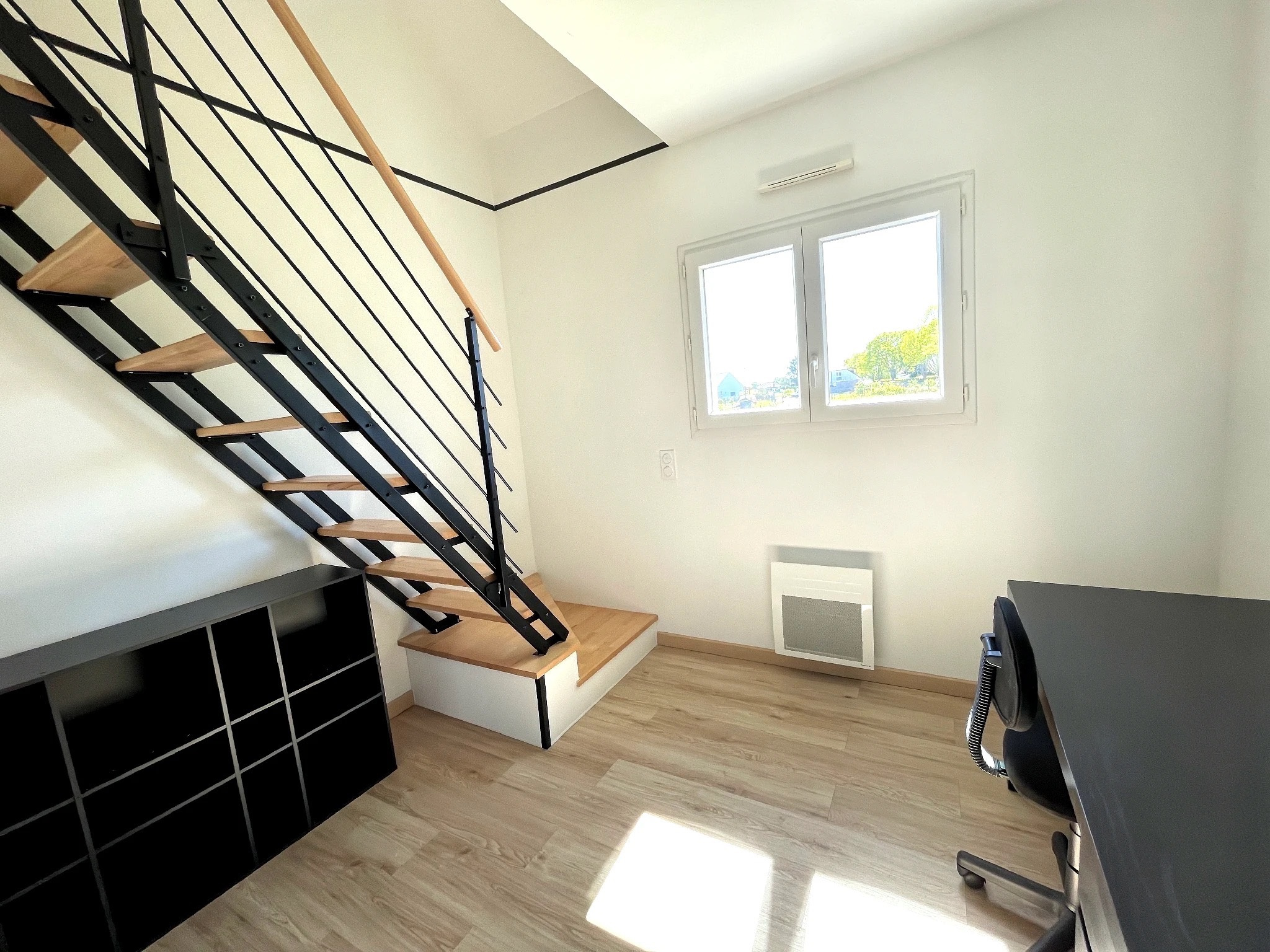 Avec ses 95 m² répartis sur 2 niveaux, profitez d'un rez-de-chaussée lumineux avec un salon/séjour ouvert sur une cuisine américaine équipée, un cellier, 2 chambres, un bureau, une salle de bain et un WC indépendant. À l'étage, une magnifique chambre double mansardée avec son coin salon vous attend pour vos moments de détente.