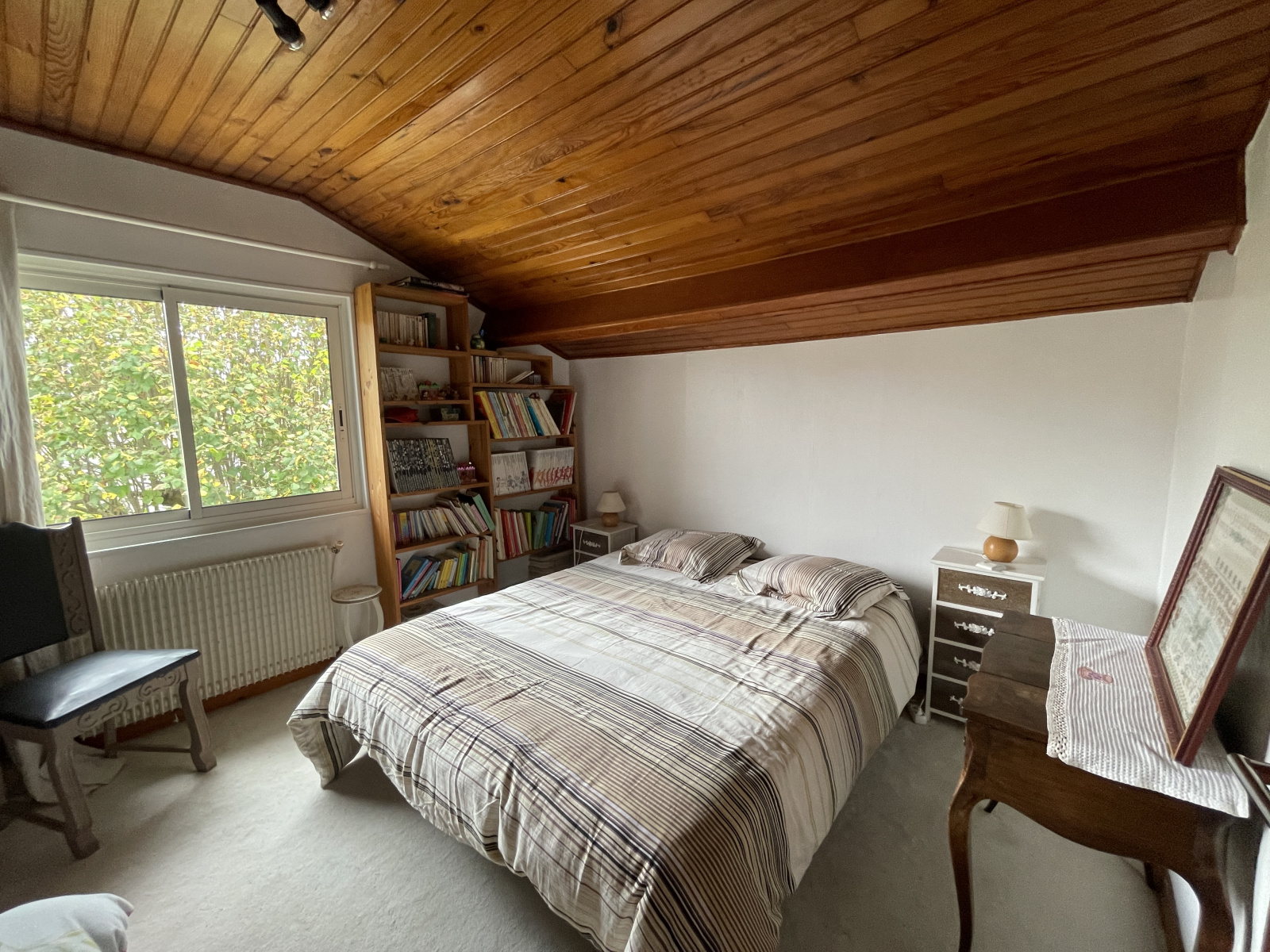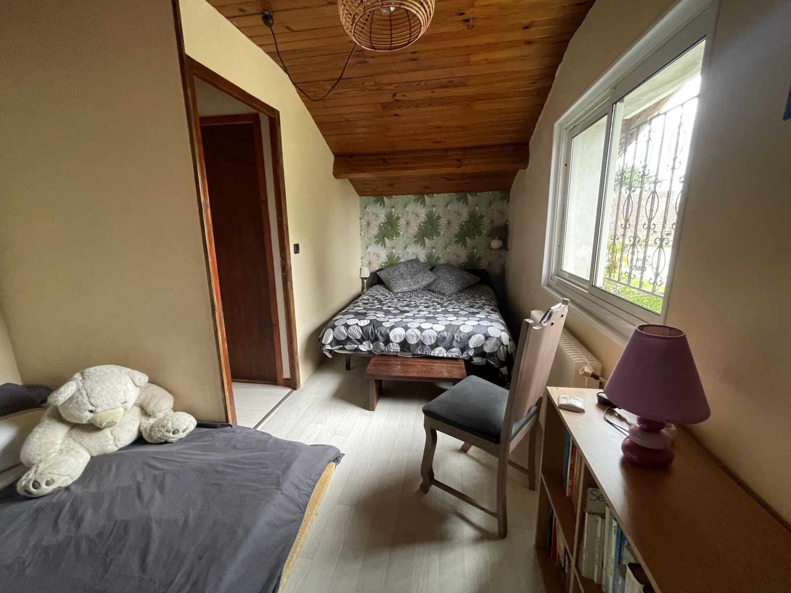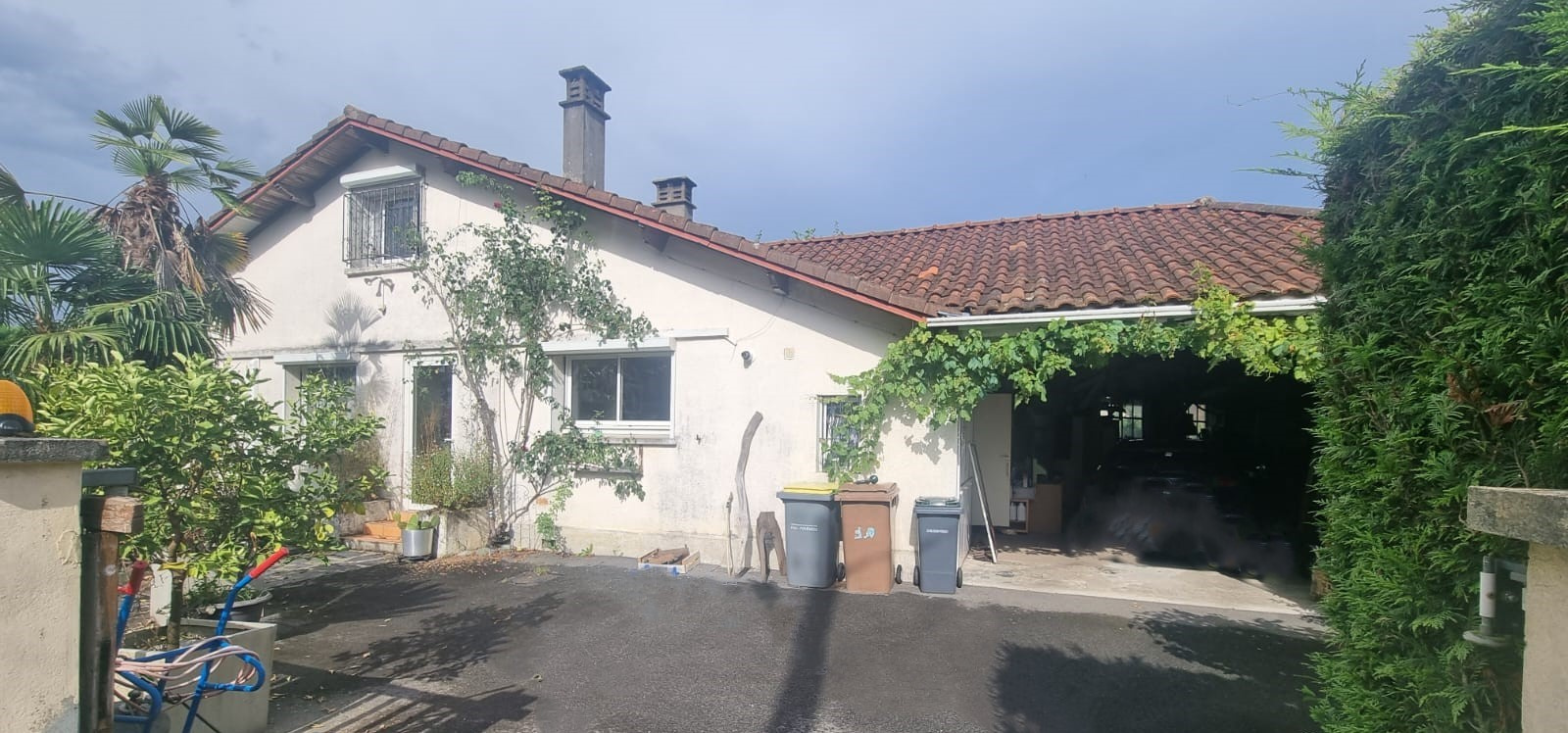 Sur 2 étages, la maison est composée au rez-de-chaussée d’un séjour simple, d’une cuisine indépendante entièrement équipée, d’un cellier, de 2 chambres, d'une salle d’eau et un WC indépendant. À l’étage, se trouvent deux chambres supplémentaires et une salle d’eau avec WC. Une autre salle d’eau avec WC est aménagée dans le grand garage/atelier de 100 m², parfait pour le stationnement de plusieurs véhicules et offrant un grand espace de rangement.