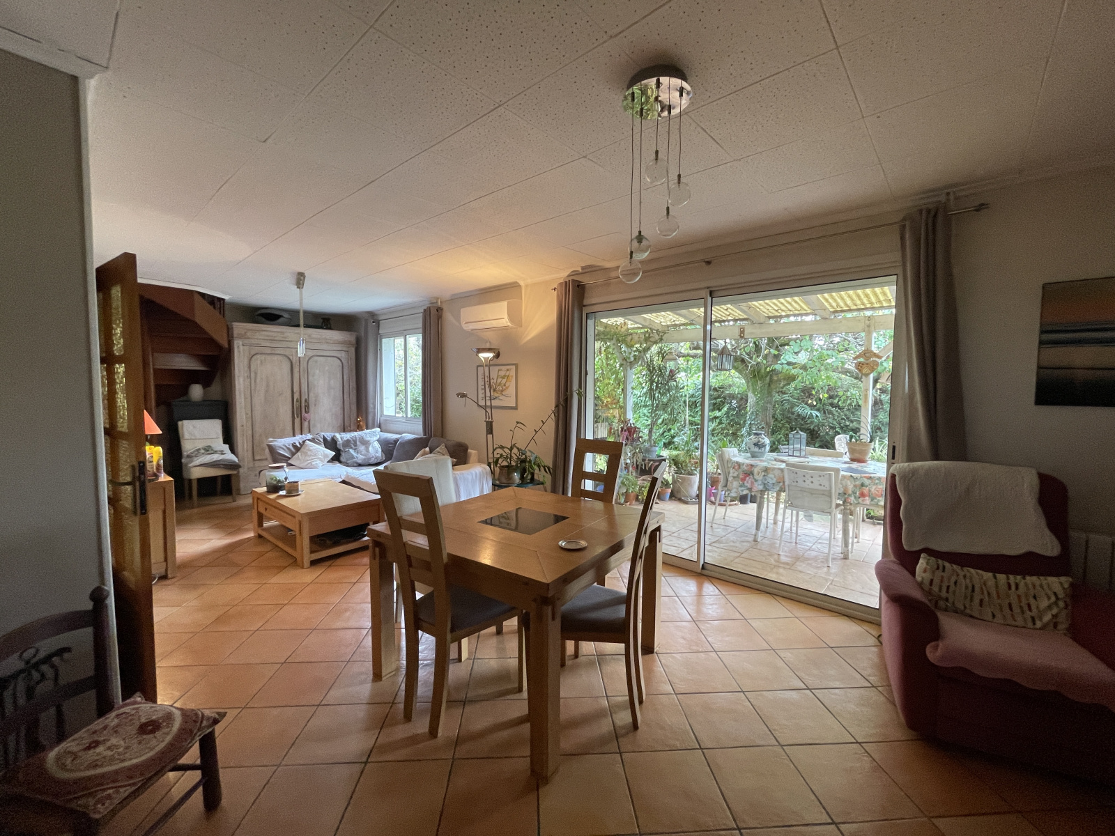 Une terrasse couverte de 30 m² permet de profiter pleinement des journées ensoleillées. La maison est également équipée de 20 m² de panneaux solaires, une station de recharge de véhicule électrique et une production d'eau chaude thermodynamique, des atouts écologiques et très économiques.