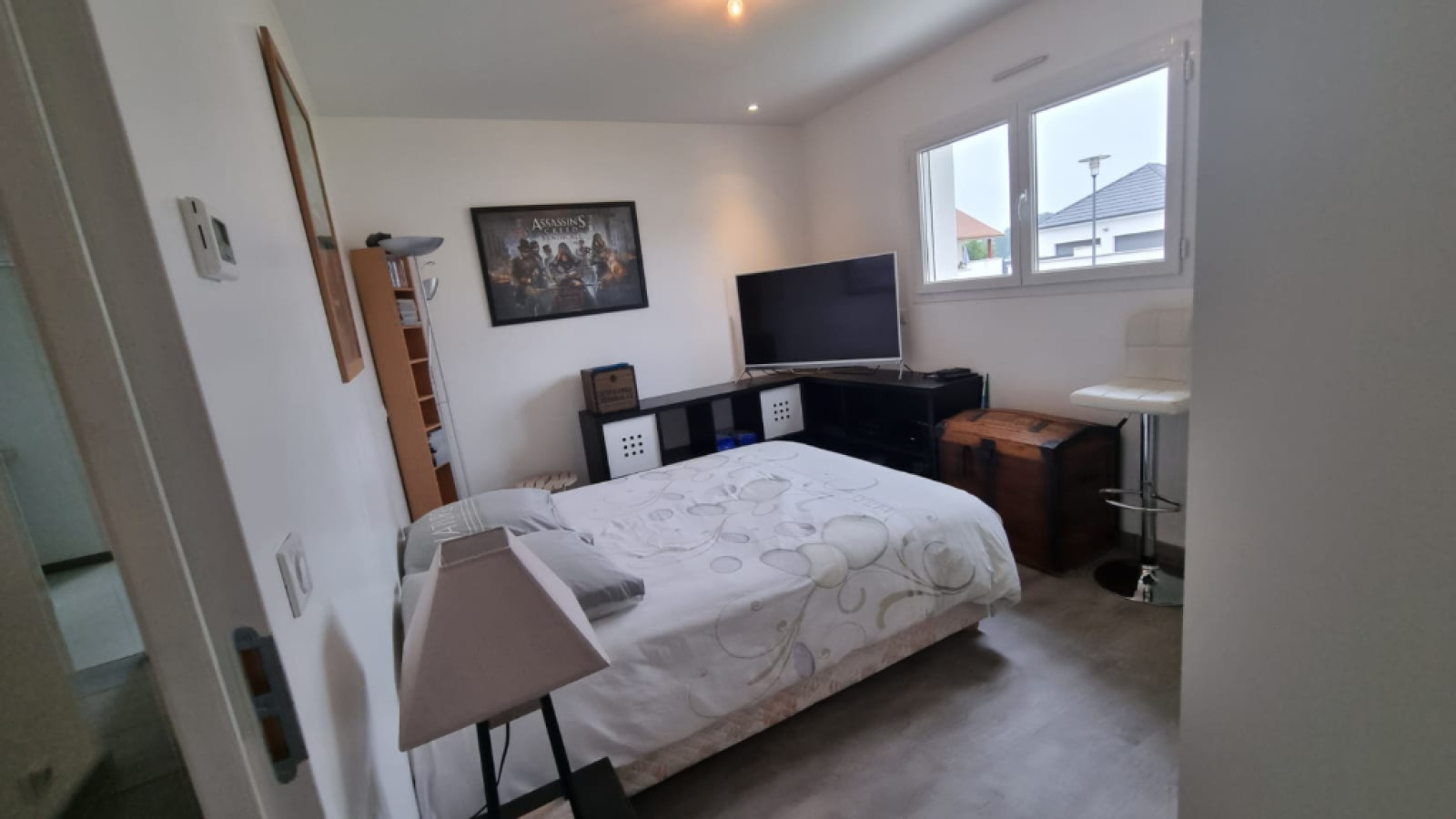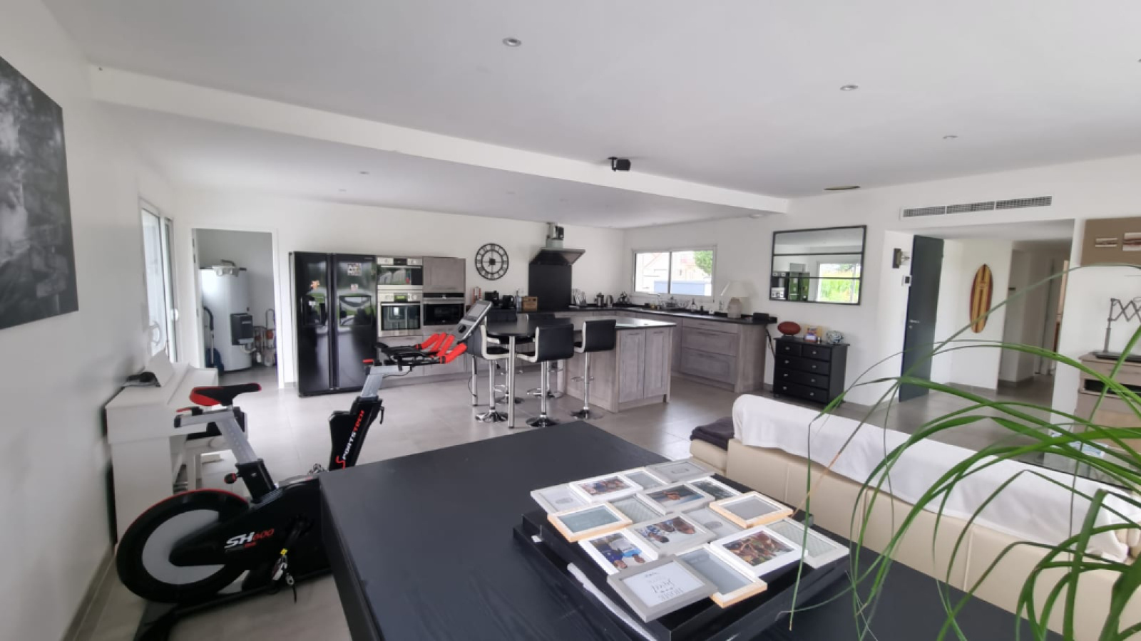 Coup de coeur ! Secteur recherché PAU-EST, belle maison contemporaine de plain-pied d'une surface habitable de 155 m², exposée SUD, sur un terrain de 1 500 m2 avec magnifique vue sur les Pyrénées. Elle comprend une grande pièce de vie salon/séjour/cuisine américaine de 60 m2, 4 chambres dont 1 suite parentale de 23 m2 avec dressing et salle d'eau, une 2ème salle d'eau et 2 WC indépendants. 1 grand garage double voiture avec porte électrique et un abri de garage viennent compléter ce bien en excellent état, construit avec des matériaux de qualité. Sous compromis.