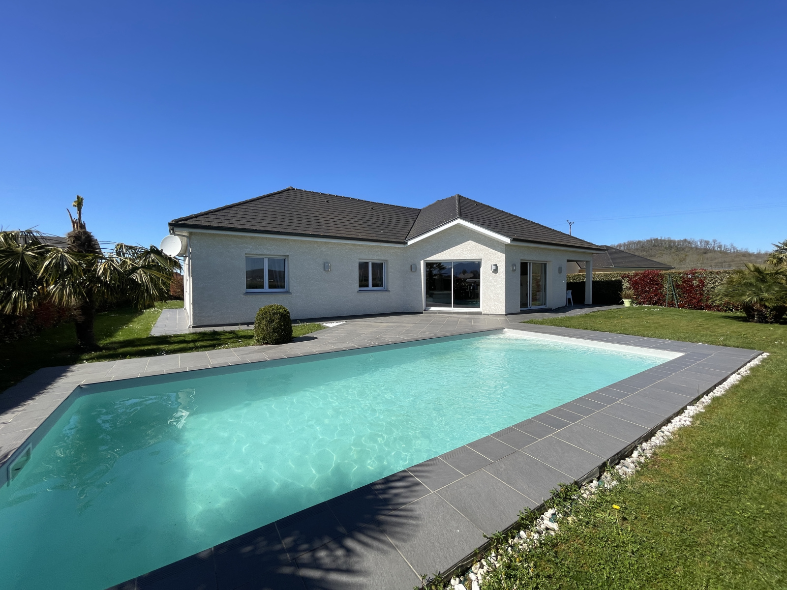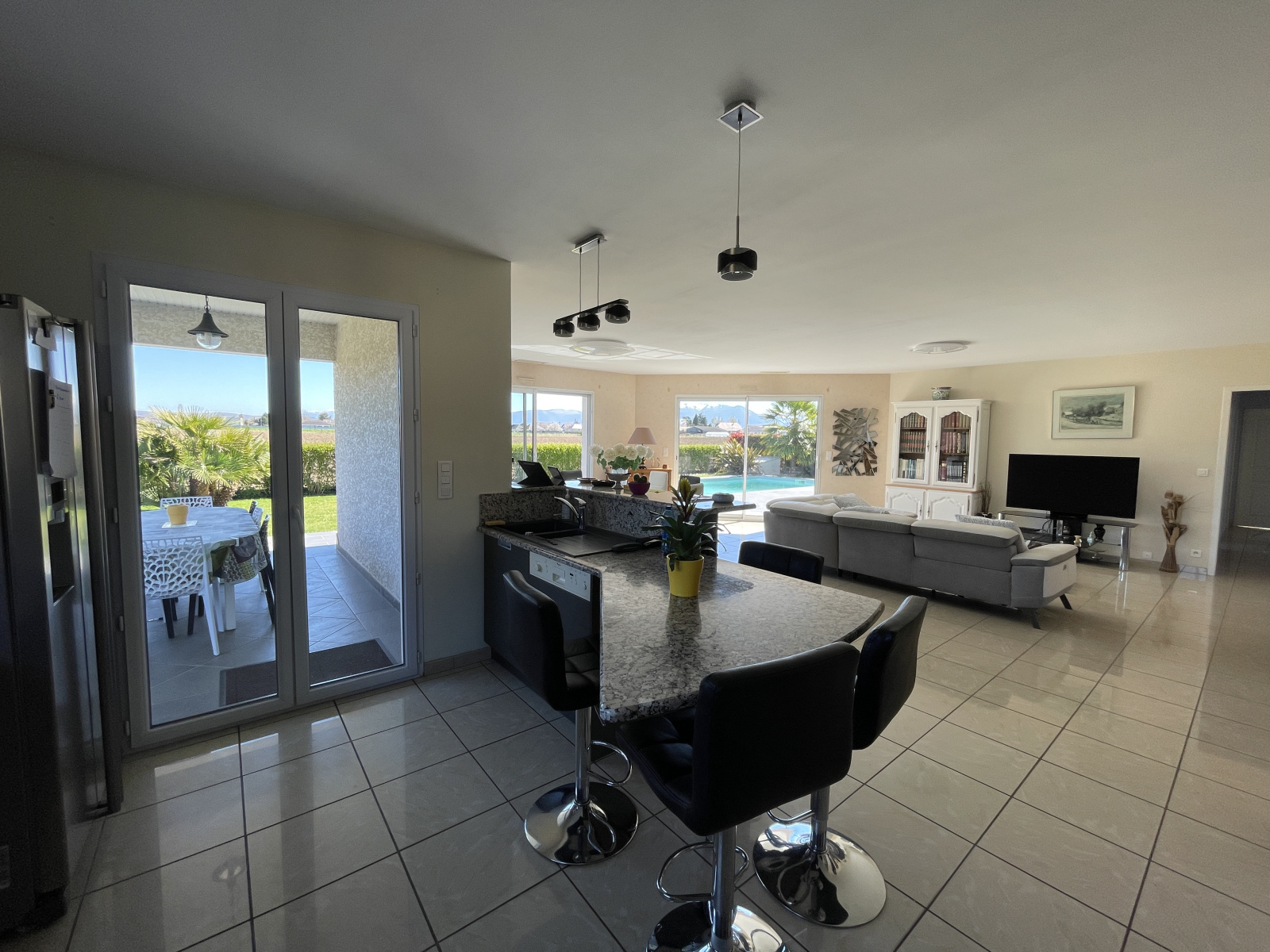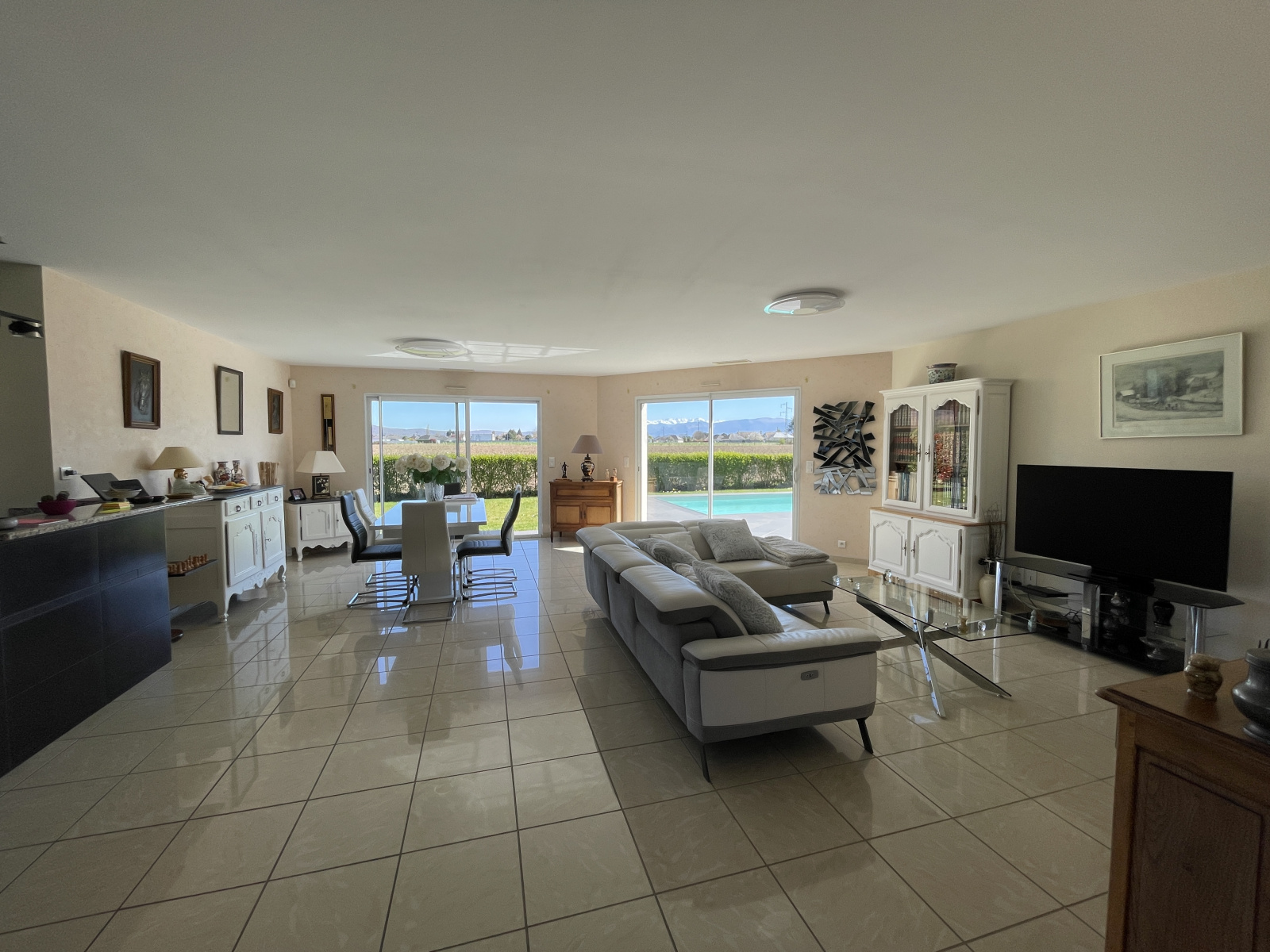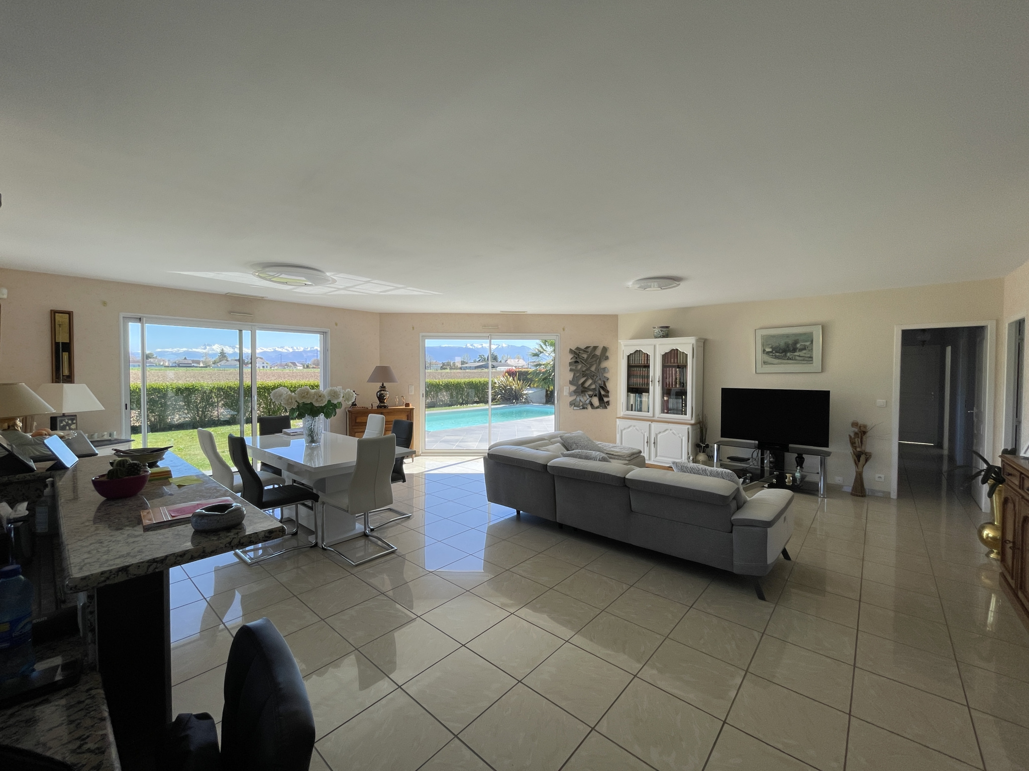 Venez découvrir cette adorable maison offrant une vue imprenable sur les Pyrénées, à seulement 5 minutes de SAFRAN et à proximité immédiate de tous les commerces et commodités ! Construite en 2009 de plain-pied sur un terrain de 1 002 m², elle dispose de 145 m² comprenant un vaste salon/salle à manger de 60 m², une cuisine entièrement équipée, un cellier, 3 chambres, un bureau, une salle de bains ainsi que deux WC. Un double garage avec des combles au-dessus, une piscine et une grande terrasse de 55 m² exposée Sud et partiellement couverte viennent parfaire cette belle propriété en excellent état. Ne tardez pas, contactez-nous pour organiser une visite virtuelle ou sur place !