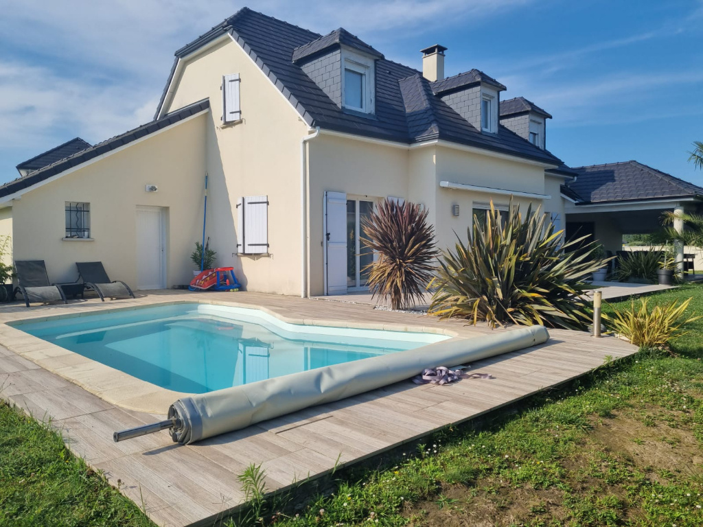 Maison construite en 2010, dans un quartier calme et résidentiel situé entre Pau, Tarbes et Lourdes, sur un terrain de 1 200 m2, d'une surface totale d'environ 140 m2. Elle est composée, sur 2 étages, d'une pièce de vie d'environ 47 m2 avec salon/séjour et cuisine américaine équipée, de 4 chambres dont 1 en RDC, de 2 salles d'eau/SDB dont 1 en RDC, de 2 WC, et d'un dressing. Un cellier, un grand garage double de 34 m2, une piscine avec sa grande terrasse et son abri de jardin couvert construits après 2015 viennent compléter ce bien en excellent état.