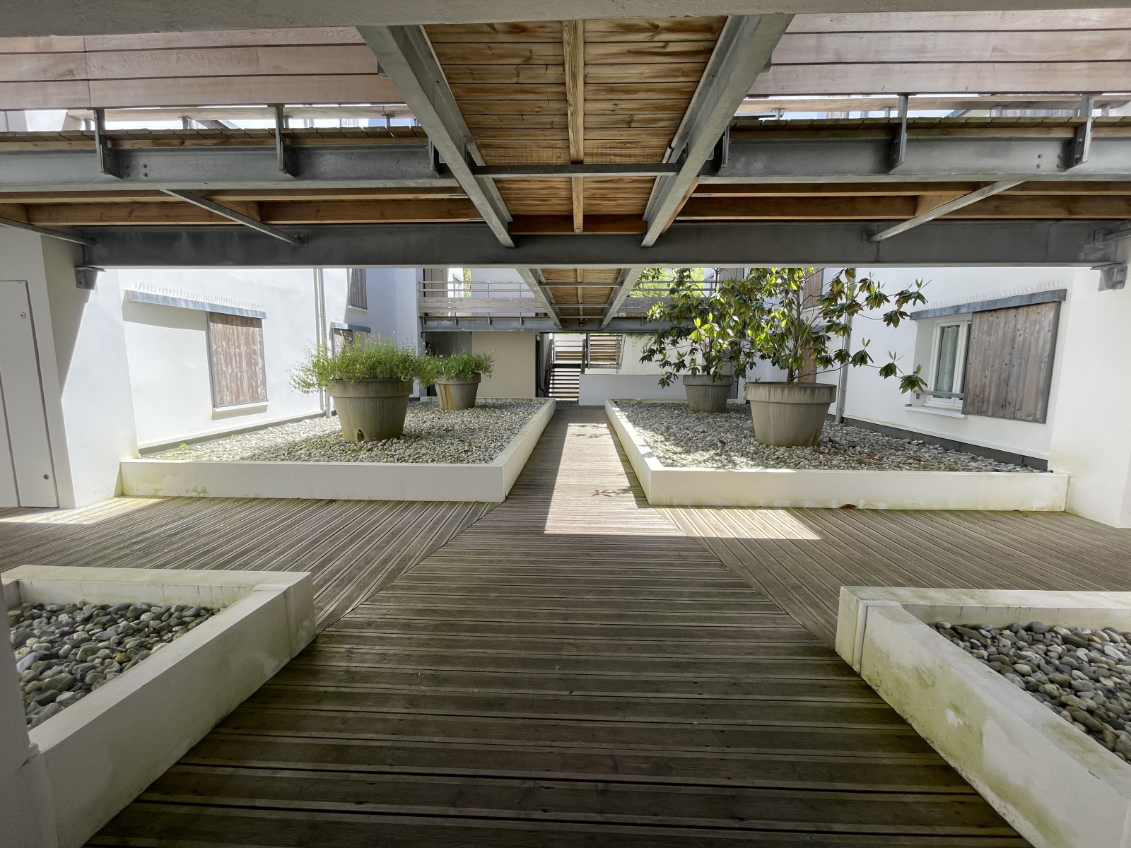 Profitez d'un vaste salon/séjour et d'une chambre principale qui s'ouvrent sur une magnifique terrasse en bois de 15 m², idéale pour profiter des journées ensoleillées en toute tranquillité.